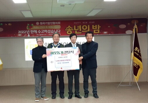 홍사문 원곡면기업인협의회장은 “예년보다 일찍 찾아온 추위로 인해 생활이 어려워진 이웃들이 많이 있다는 이야기를 듣고 기업인협의회 회원 기업체들끼리 십시일반 뜻을 모아 성금을 기탁하게 됐다”며 “지역주민들의 복지 증진을 위해 유용하게 쓰여지길 바라며 앞으로도 많은 관심을 가지고 도와드릴 수 있는 방법을 생각해보겠다”고 기탁 소감을 전했다.