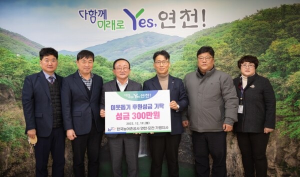 김덕현 연천군수는 “연천군 농업여건 개선으로 농가소득 증대에 기여하고 어려운 여건속에서도 지역사회 소외된 이웃을 위한 관심과 지원을 아끼지 않는 홍성갑 지사장님께 진심으로 감사드린다”고 말했다.