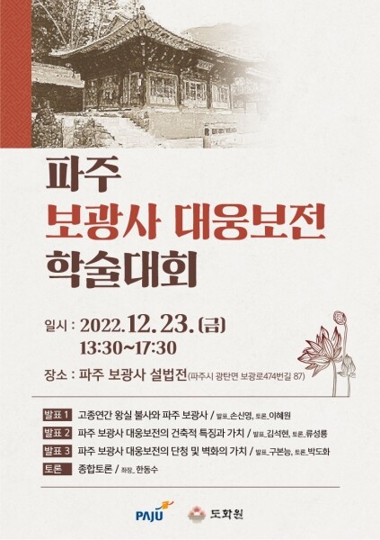 이번 학술대회는 파주 보광사 대웅보전에 관심이 있는 파주시민이라면 별도의 예약 없이 누구나 참여할 수 있다.
