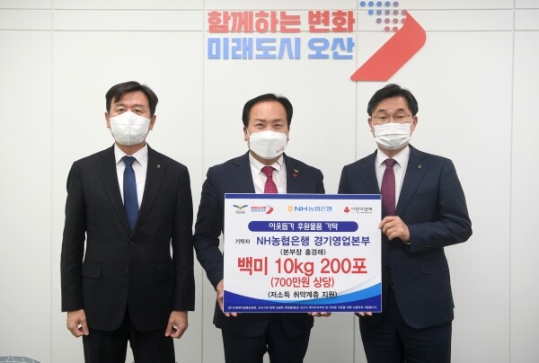 한편 이날 기탁식에 함께 참석한 NH농협은행 오산시지부는 오산시 취약계층을 위한 장학금 전달 및 취약계층 지원 등 지속적인 후원을 함으로써 지역사회 나눔문화 실천에 앞장서고 있다.