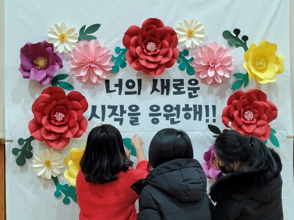학부모들은 “우리 아이들이 졸업식날 예쁘게 사진을 찍을 공간이라 더 신경이 쓰인다”며 구도와 각도를 고려해 포토월을 배치했다 학교 담당자는 “아이들에게 소중한 추억을 남길 수 있게 해준 북부교육지원청과 학부모님들께 감사하다”고 인사를 전했다.