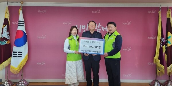 김승근 양주1동장은 “연말을 맞이해 양주1동 저소득층 주민들을 위해 소중한 기부활동을 함께해 주신 양주1동 지역사회보장협의체 위원들께 감사하다”며“도움이 필요한 이웃을 살피고 보살피는 일에 소중히 사용하겠다”고 말했다.