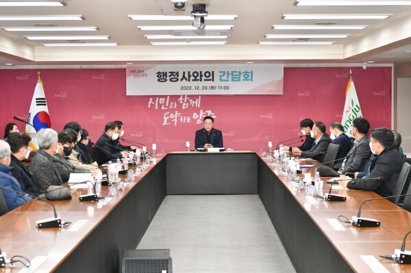 이날 강수현 시장은 20여명의 행정사와 함께 양주시, 양주출입국·외국인사무소 등 행정기관 민원 업무 접수와 처리에 관한 발전방향을 논의하는 시간을 가졌다.