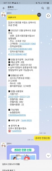 김포시 맑은물사업소는 ‘카카오 알림톡 서비스’를 통해 더 많은 시민이 간편하고 신속하게 수도요금 정보를 확인할 수 있게 되기를 기대하고 있으며 앞으로도 시민 편의를 증진 시킬 수 있는 방향으로 수도요금 고지 및 납부 시스템을 개선해 나간다는 방침이다.