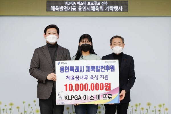 이소미 선수는 이날 골프꿈나무 육성을 위해 써달라며 용인시체육회에 체육발전기금을 전달했다.