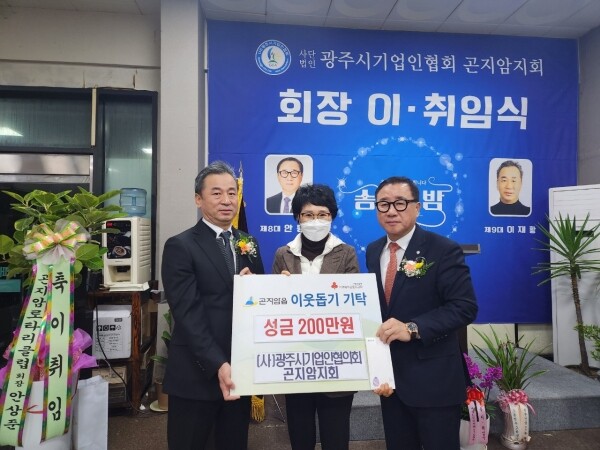 안동천 이임회장과 이재황 신임회장은 “올해도 연말연시 어려운 이웃을 위해 곤지암지회 65여명의 회원들이 마음과 뜻을 모아 성금을 기탁하게 됐다”며 “앞으로도 어려운 이웃을 돕기 위한 곤지암지회의 나눔은 계속되도록 노력하겠다”고 기탁 의사를 밝혔다.