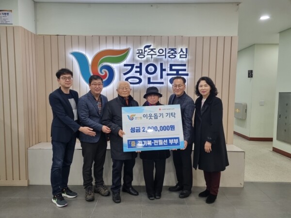 광주시 경안동에 거주하는 김기복·전월선씨 부부는 지난 21일 경안동 행정복지센터를 방문해 관내 어려운 이웃에게 전달해 달라며 성금 200만원을 전달했다.