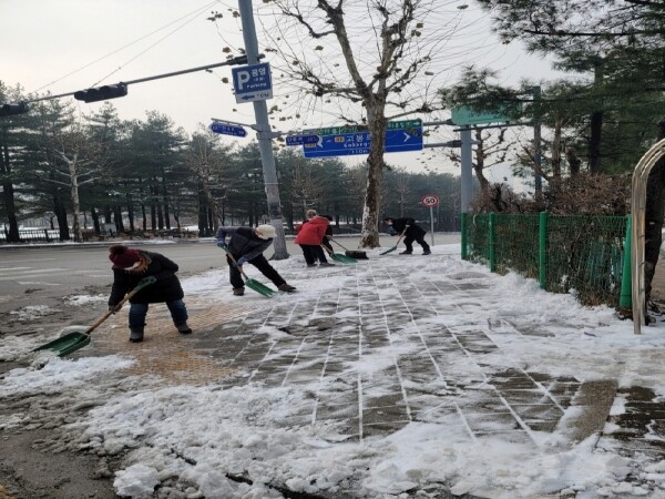 또한, 제설봉사단은 비탈길 보행로 등 제설 취약구역에 중점적으로 제설작업을 실시해 관내 제설작업에 큰 힘을 보탰다.