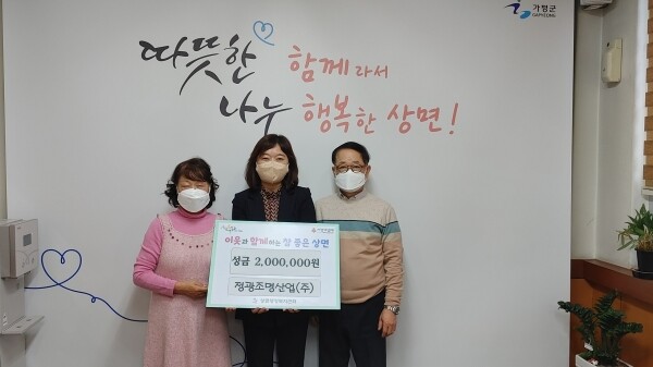 정광조명산업은 1981년 창립된 조명 생산·판매 기업으로 매년 지역의 어려운 분들을 위한 이웃돕기 성금 기탁은 물론 지역 학생들을 위한 장학금 지원 등 지역사회에 선한 영향력을 행사하는 기업이다.